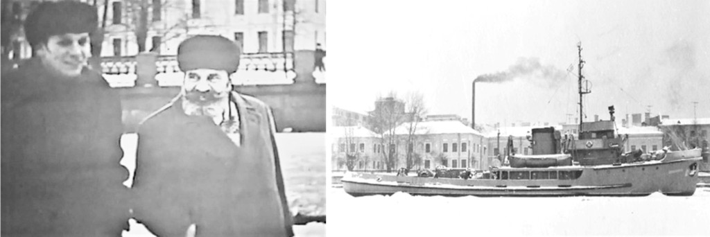 Ил. 15. В.В. Тимонов (справа) и А.В. Майер на набережной Лейтенанта Шмидта перед церемонией передачи буксира «В. Трефолев». Ноябрь 1965 года
