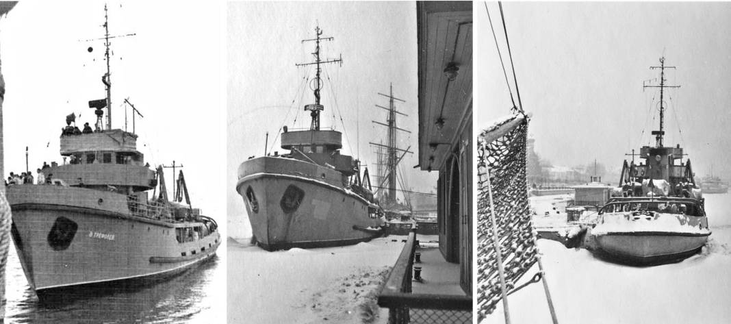 Ил. 14. Фотохроника прибытия морского буксира «В. Трефолев» для передачи ЛГМИ. Ноябрь 1965 года
