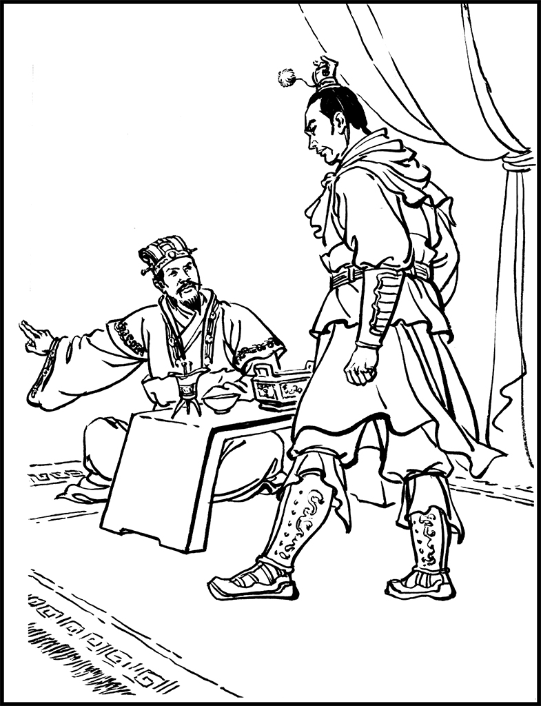 Услышав слова Вань Юня о Люй Бу, Шисунь Жуй снова и снова качал головой и говорил: «Нет, нельзя. Люй Бу смелый и коварный, и к тому же сноб, на него нельзя полагаться. Ван Юнь сказал: «Я хочу попробовать. Однажды я пригласил Люй Бу выпить, и он с грустью рассказал мне, что было у него на сердце. Он сказал, что Дун Чжо часто выходил из себя по пустякам, поэтому брал в руки нож и бросал в него. Если бы не его ловкость движений тела и проворливость, он бы давным-давно уже поранился бы. Я также слышал, что у него был блуд с девчонкой Дун Чжо. Если бы Дун Чжо узнал об этом, оставил бы это просто так? Я думаю, что он, оставаясь рядом с Дун Чжо, тоже днями напролет пребывает в панике». Услышав это, все кивнули в знак согласия.