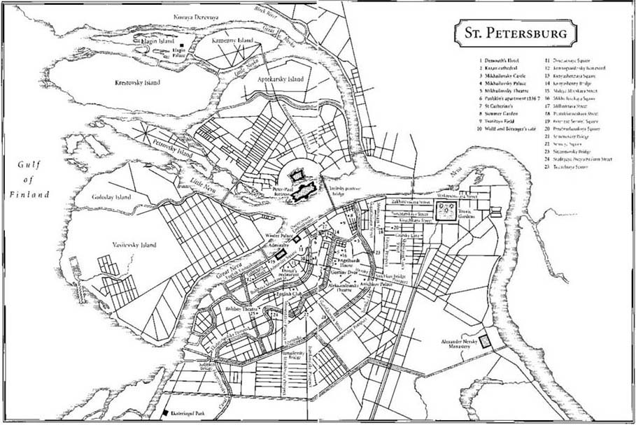 A LEKSANDR PUSHKIN was born in Moscow on Thursday 26 May 1799, in a âhalf-brick and half-wooden houseâ on a plot of land situated on the corner of Malaya Pochtovaya Street and Gospitalny Lane.1 This was in the eastern suburb known as the German Settlement, to which foreigners had been banished in 1652. Though distant from the centre, it was, up to the fire of 1812, a fashionable area, âthe faubourg Saint-Germain of Moscowâ.2 On 8 June he was baptized in the parish church, the Church of the Epiphany on Elokhovskaya Square.* And that autumn his parents, Sergey and Nadezhda, took him and his sister Olga â born in December 1797 â to visit their grandfather Osip Gannibal, Nadezhdaâs father, on his estate at Mikhailovskoe, in the Pskov region. Most of the next year was spent in St Petersburg. The Emperor Paul, coming across Pushkin and his nurse, reprimanded the latter for not removing the babyâs cap in the presence of royalty, and proceeded to do so himself. In the autumn they moved back to Moscow, where they were to remain for the duration of Pushkinâs childhood.