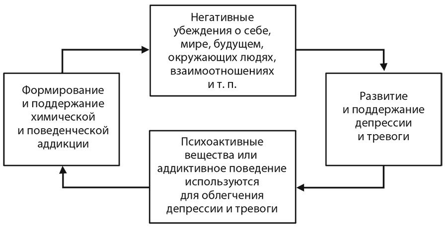 Рис. 2.1. Порочный круг аддикции, тревоги и депрессии
