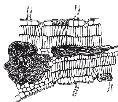 Рис. 14. Адаптации растений к свету на тканевом уровне. Световая структура листа акации песчаной (по А.П. Шенникову, 1950)