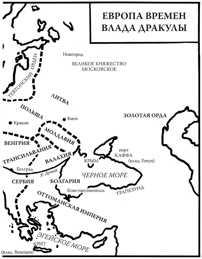 В тот период Европа от Атлантики до Черного и Балтийского морей в гораздо большей степени представляла собой пространство единой цивилизации, скрепленной прочными династическими и культурными узами, чем современный мир или даже современная Европа. Дракуле и его современникам показалось бы чуждым и странным само понятие разделения на Запад и Восток, которое сегодня так прочно обосновалось в университетских курсах по «западной цивилизации», а также в нашей привычке мыслить категориями разделенных «железным занавесом» западных демократий и социалистических стран Восточной Европы. Некоторые даже склонны сводить европейскую историю к противоборству сил Запада, унаследовавшего высокую культуру Античности, с азиатским деспотизмом. Такого рода конфликты с незапамятных времен вспыхивали на рубежах единой европейской цивилизации, вынужденной противостоять разрушительной чужеродной силе кочевых племен, являвшихся из глубин Азии. Во времена Дракулы самым главным и решающим для судеб Европы проявлением этого конфликта стало противоборство с Османской империей, которая в середине XIV в. предприняла первые попытки вторжения на европейскую землю.