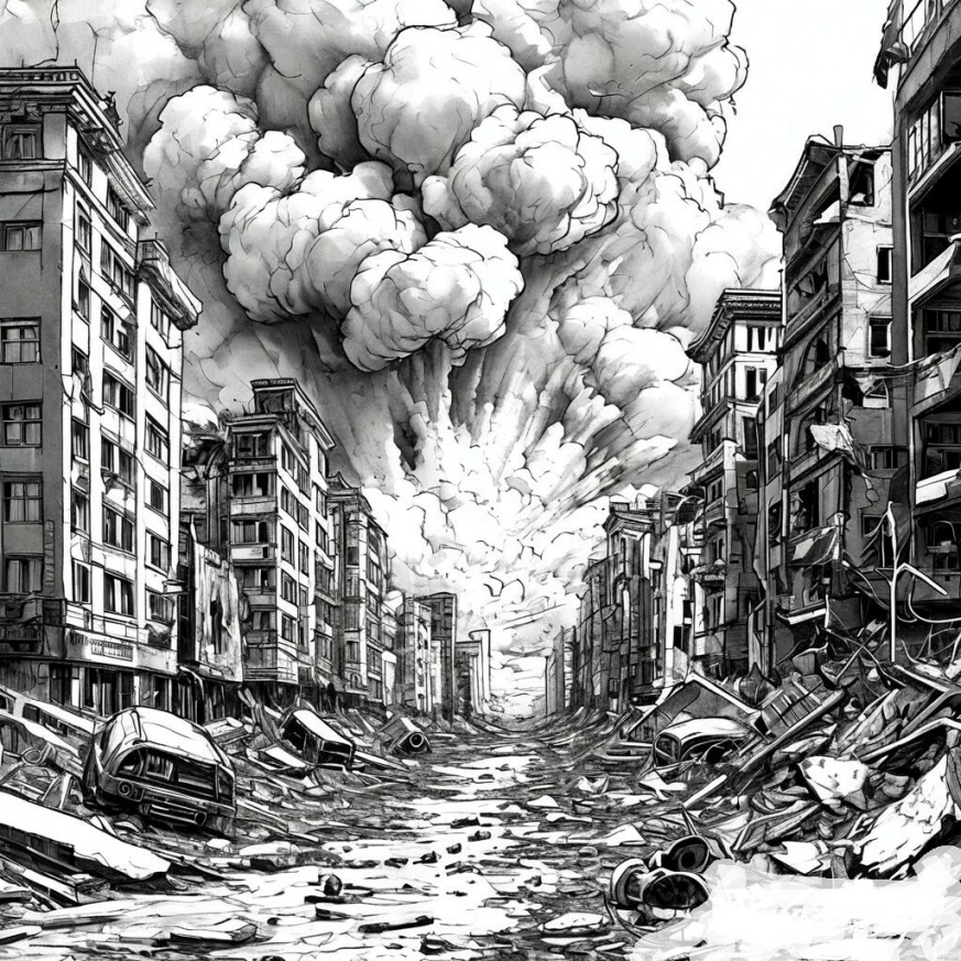 Робот выронил чашку с горячей водой, и она упала на пол. Хорошо, что взрыв произошёл на большом расстоянии и окна выдержали ударную волну, прокатившуюся по городу. QR-1966 посмотрел в окно. Там, где произошёл взрыв, поднимались клубы едкого чёрного дыма.