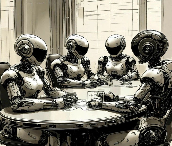 Поэтому собрание совета директоров больше напоминало светский раут, нежели совещание бездушных роботов-убийц, которые пытались захватить власть над этой древней планетой солнечной системы.