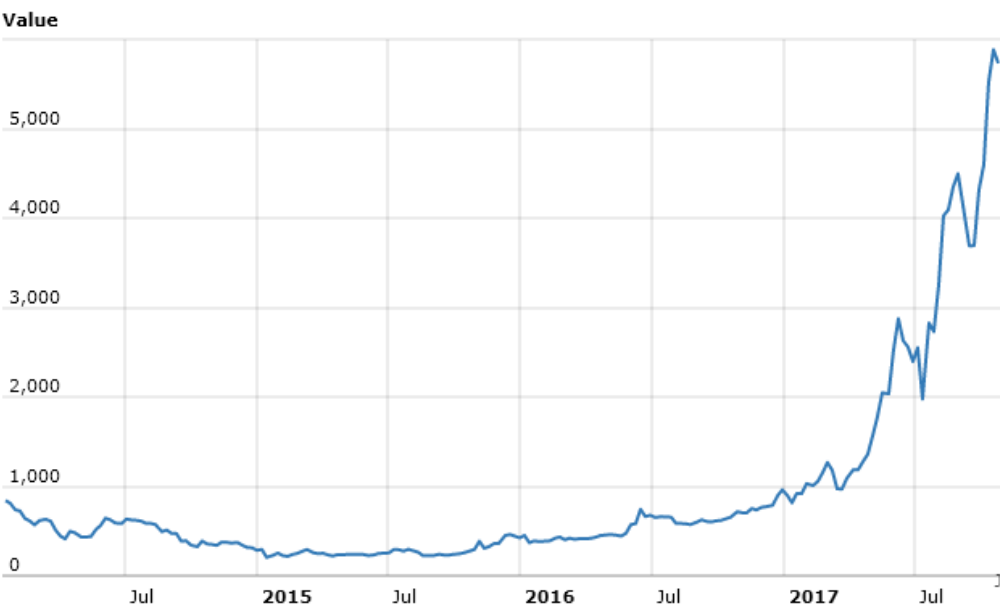 Estas dos pizzas le cuestan al usuario aproximadamente $ 25. Actualmente (octubre de 2017), un Bitcoin cuesta más de $ 5,000. Puedes calcular fácilmente que esas dos pizzas le cuestan a ese tipo millones de dólares.