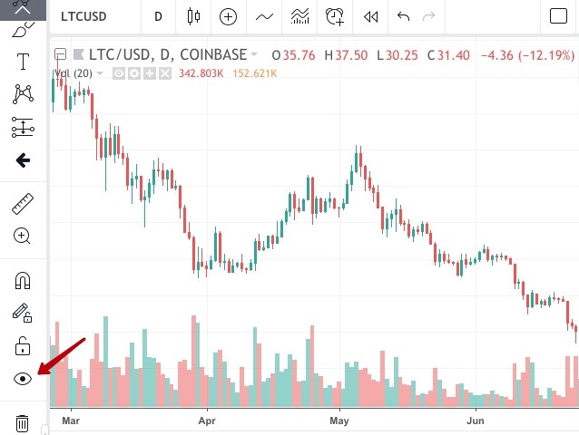 Se vuoi rimuovere la figura disegnata dal tuo grafico, fai clic sul pulsante più in basso sul pannello. Se vuoi eliminare localmente solo uno strumento o una linea, fai clic su di esso e avrai un menu di opzioni.