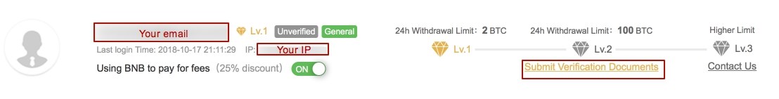 Es ist zu beachten, dass für den Börsenhandel oder die Ein- und Auszahlung von Geld keine Überprüfung erforderlich ist. Sie können aber das Auszahlungslimit von 2 BTC auf 100 BTC pro Tag nur nach Aktivierung der Zwei-Faktor-Authentifizierung und Überprüfung der Benutzerdaten erhöhen (Sie müssen das Formular ausfüllen: Name, Adresse usw., sowie den Scan eines Passes und ein Passfoto beilegen).