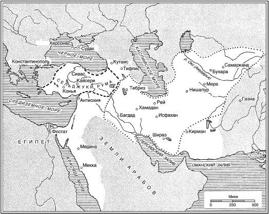 Рис. 1. Карта территорий, где правили Сельджукиды; подробнее показаны территории, где правили Великие Сельджуки Персии