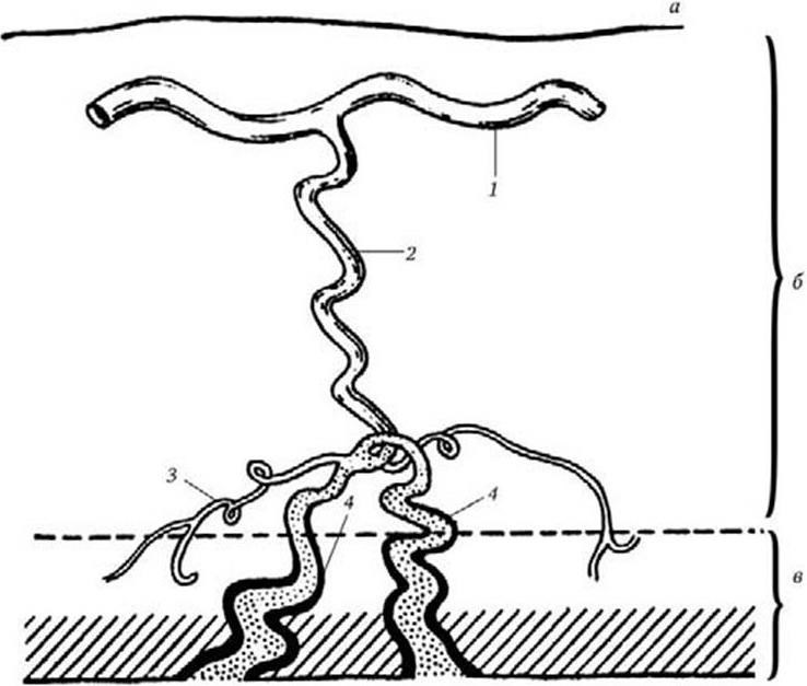 Рис. 18. Схема снабжения плаценты кровью при доношенной беременности: