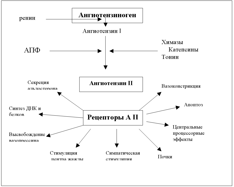 Рис. 1. Патогенетическая роль АПФ в развитии АГ.