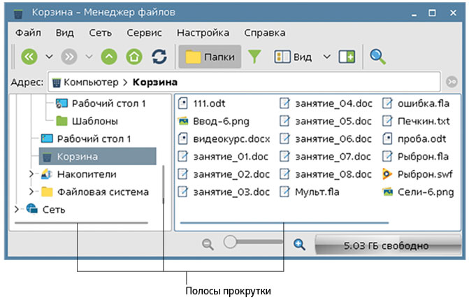 Рис. 1.8. Полосы прокрутки в окне Корзина