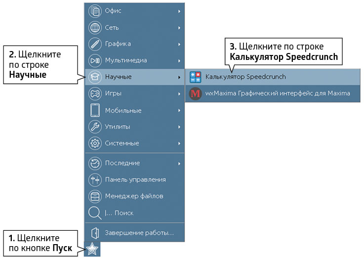 Далее с целью сокращения записи команда, состоящая из нескольких шагов, будет изображаться так: Пуск/Научные/Калькулятор Speedcrunch