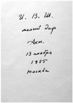 В нашей семье как бесценная реликвия хранится отпечатанная на машинке рукопись «Поэма без героя», подаренная ИВШ Анной Андреевной Ахматовой с ее посвящением и авторскими пометками в 1955 году (поздняя и полная редакция).
