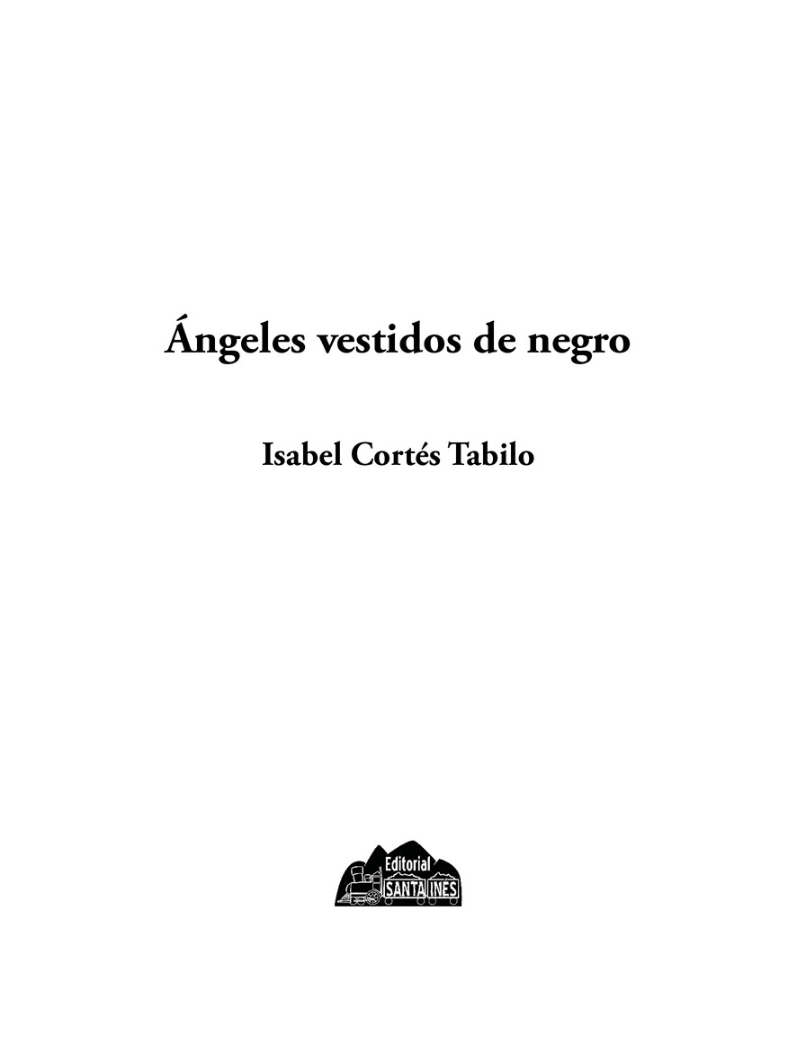 isabelcortestabilo@gmail.com Colección Sendero de Cuentos «Ángeles vestidos de negro» Cuentos chilenos, 122 páginas Tercera edición: julio de 2019 Edita y distribuye editorial Santa Inés Santa Inés 2430, La Campiña de Nos, San Bernardo de Chile (56-2) 229335746 librosdelaeditorial@gmail.com Facebook: Editorial Santa Inés www.editorialsantaines.cl Registro de Propiedad Intelectual N° 174.535 ISBN: 978-956-8675-66-0 eISBN: 9789568675837 Edición Gráfica y Literaria: Patricia González Edición de Estilo y Ortografía: Susana Carrasco Ilustración de Portada: Andrés Cotrina Edición Electrónica: Sergio Cruz Impreso en Chile / Printed in Chile Derechos Reservados