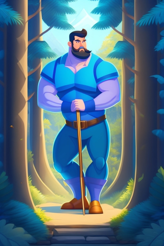Лилу сразу его увидела. До него было еще шагов сто, но видно было очень хорошо. Он сидел на берегу. Его одежда выглядела немного потрёпанной. Наверное, он изодрал ее об ветки деревьев, когда пробирался сквозь лес к реке. На его голове был надет шлем, не совсем было понятно то ли из камня, толи из железа. Все таки его голова была почти на уровне верхушек деревьев. Рядом на земле лежала огромная дубинка. Он сидел и вздыхал. Одна его нога была опущена в реку.