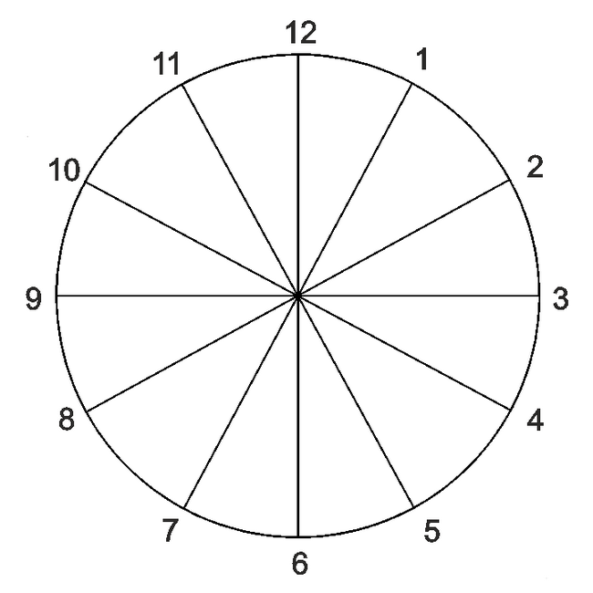 Мы наносим в соответствии с циклами наших лет. Каждый год – это движение на одно деление, на одну линию. Мы рассматриваем циклы годовые. Для того чтобы определить, в каком годовом цикле вы находитесь сейчас относительно 12-летнего цикла, вам нужно поставить дату, месяц и год вашего рождения на 12-ю линию часа.