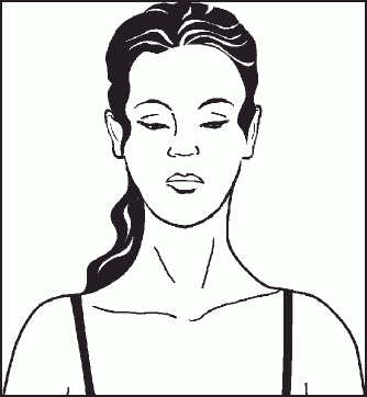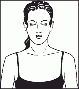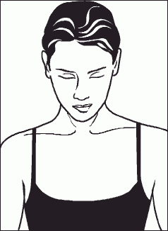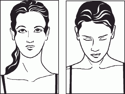Сидя перед зеркалом и держа голову прямо, закройте глаза и медленно опустите голову вниз.