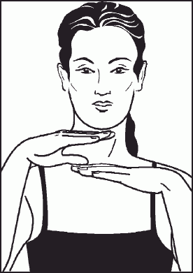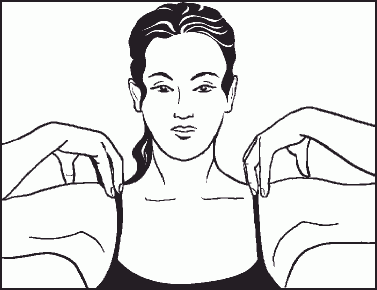 Тыльной стороной ладони похлопайте себя под подбородком. Повторите упражнение другой рукой. Постепенно увеличивайте амплитуду движений. Это упражнение можно выполнять тогда, когда накладываете крем на шею.