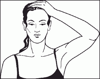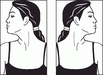 Положите руку на лоб. Оказывая рукой сопротивление, попытайтесь выполнить наклон головы вперед. Повторите упражнение, положив руку на затылок. Преодолевая сопротивление руки попытайтесь наклонить голову назад.