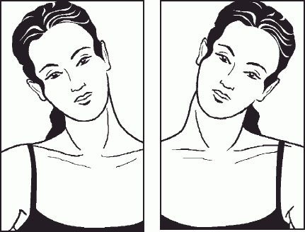 Держа голову прямо медленно и плавно наклоните ее вправо. Снова переместите в центр и выполните движение в левую сторону. Постепенно увеличивайте амплитуду наклона, пока не сможете наклонить голову под углом 45 градусов.