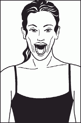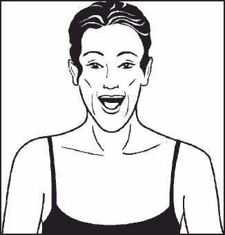 Направляя взгляд прямо перед собой, опустите нижнюю челюсть как можно ниже. Медленно вдыхайте и выдыхайте. Затем улыбнитесь как можно шире и задержите это положение на некоторое время. Расслабьтесь и повторите упражнение 10 раз.