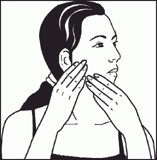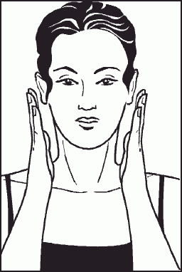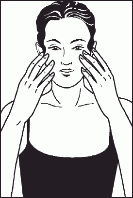 Аккуратно погладьте подушечками пальцев свое лицо по направлению снизу вверх.
