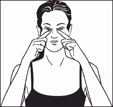 Прижмите указательные пальцы к внутренним уголкам обоих глаз. Стимуляция этих точек поможет снять напряжение и предотвратить появление мешков под глазами.