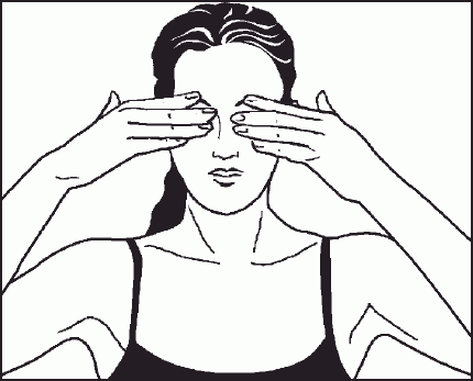 Закройте глаза, положите на них ладони и полностью расслабившись, передайте глазам тепло своих рук.