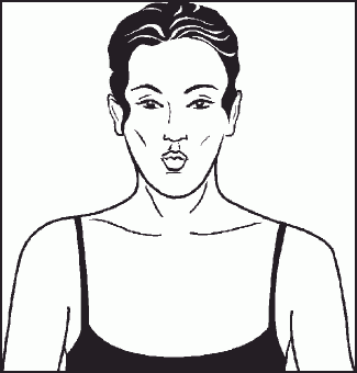 Немного отклоните голову назад, но не запрокидывайте ее. Слегка выпячивая подбородок вперед, закройте верхнюю губу нижней.