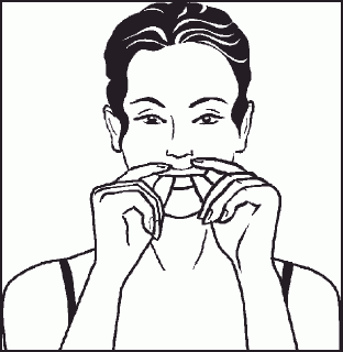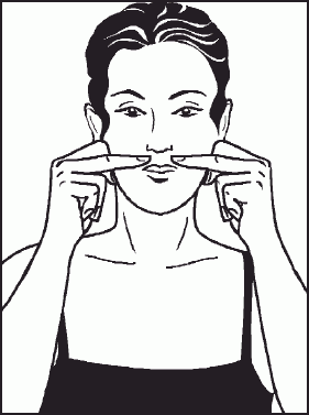 Способом, описанным во втором упражнении, проработайте область над верхней губой. Медленно расслабьте мышцы над областью рта.