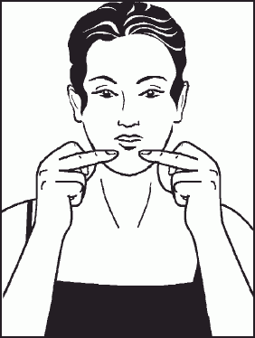 Возьмите себя за верхнюю губу и плавно поднимайте мышцы щек в направлении глаз. Расслабьтесь и повторите упражнение 5 раз.