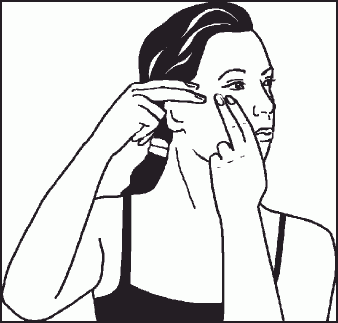 Прижмите средний и указательный палец правой руки к внешнему краю правой брови. Подтягивая пальцы в сторону волос, посмотрите на кончик носа. Затем закройте глаза и расслабьтесь. Повторите упражнение на левый глаз. Выполняйте движения от 5 до 10 раз. Упражнение поможет предотвратить появление набрякших век.