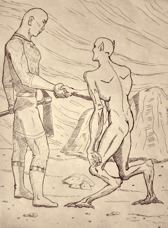 Остановившись в нескольких шагах от Нагли, это исчадие Мрака вскинуло в приветственном жесте руку ладонью вперёд и прошипело голосом, похожим на скрежетание одного точильного камня о другой: