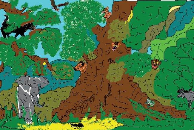 Слон долго вертел головой, пока не разглядел под ногами поваленное дерево и ветку, которой придавило маленькую мышку.
