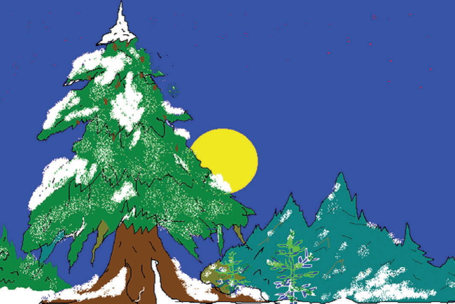 Наступила зима и накрыла семечки тёплым снежным одеялом, чтобы не помёрзли. А тут и весна пришла, кончились холода, растаял снег, солнышко пригрело; и стали семечки быстро прорастать, а летом всё вокруг старой ёлки, куда ни глянь, покрылось молодой зелёной порослью. Целое лето солнышко грело молодые деревца, а тучки поливали их тёплым дождиком, чтобы росли быстрее. Деревца были совсем махонькие и нежные; пройдёт ещё много лет, прежде чем из них вырастет настоящий лес. Все радовались, что их труд не пропал даром, а больше всех была счастлива старая ёлка. Она смотрела с высоты на молодые деревца и вспоминала то время, когда сама была маленькой и зелёной. Теперь она была готова закончить свой жизненный путь. Только одно беспокоило её: она боялась, что когда упадёт, то может повредить маленькие ёлочки.