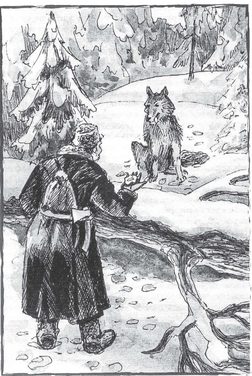 Волк, словно поняв его слова, подошёл и мигом проглотил хлеб.