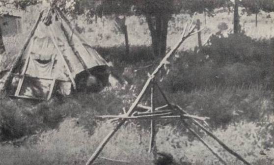 Летняя палатка индейцев оджибвеев (Миннесота, 1947).