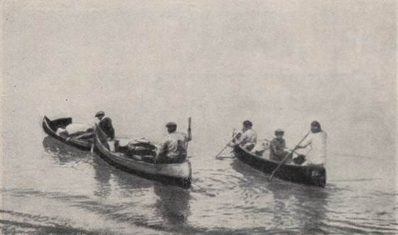 Лодка из натянутых на раму шкур (так называемая bull boat) первоначально была для северных охотников прерий предметом, чуждым их культуре. Вероятно, друзья Теннера заимствовали секрет изготовления такой лодки у манданов, использовавших для этого шкуры бизонов. Подобными лодками пользуются обычно для переправы через реки; для длительного плавания они почти не пригодны. Из текста видно, что к такой лодке индейцам пришлось прибегнуть за неимением дерева. – Прим. ред.