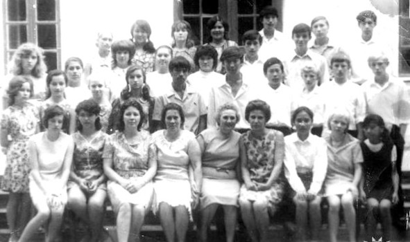 8 «В»: И. Горячкина, Л. Хафизова, В. Тарабрин, Х. Тынынбаев. Н. Клинчев, С. Костин, Т. Зарщикова, И. Шаловский, М. Митько, В. Попов, С. Тюрин, Л. Зарщикова, Т. Куликова и др., Е. К. Коновалова, А. А. Дворецкая, В. П. Корсунская, Г. П. Пухно. 1973