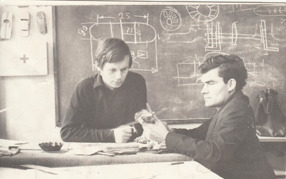 В авиамодельном кружке: В. Юрицын и В. Верин. 60-е годы