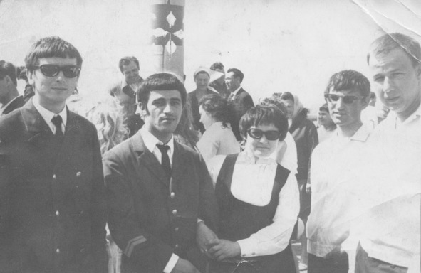 Дембель А. Евсеева (в центре); Рядом – Г. Цой и В. Чаков. 1969