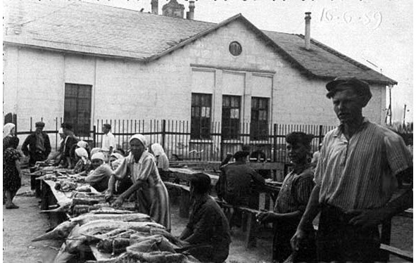 Жилгородской рыбный базарчик на ул. Пархоменко. 50—60 гг.