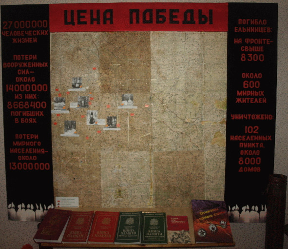 На фото: Стенд «Цена Победы» в музее Ельнинского центра творчества «Реликвии войны».