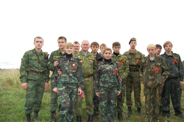 На фото: Юные «гвардейцы» со своим командиром Валерием Громовым на полевом выходе.