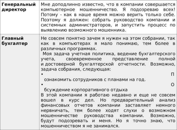 Для каждого участника делаем отдельные карточки с описанием роли и позиции, определяем время для совещания.