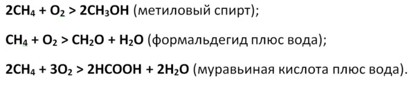 Другие химические реакции метана, также возможны во влажном воздухе колоды, по крайней мере, теоретически. Скажем при окислительных реакциях метана во влажном воздухе, в присутствии опять же катализаторов, могут образовываться спирты, альдегиды, карбоновые кислоты.