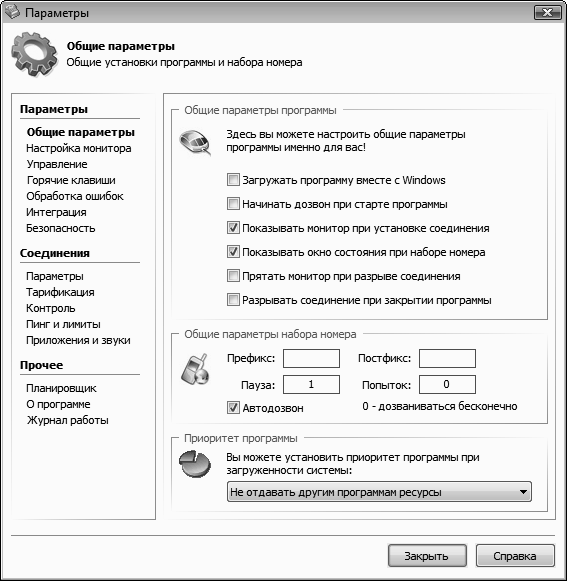 Рис. 1.4. Окно параметров программы MuxaSoft Dialer