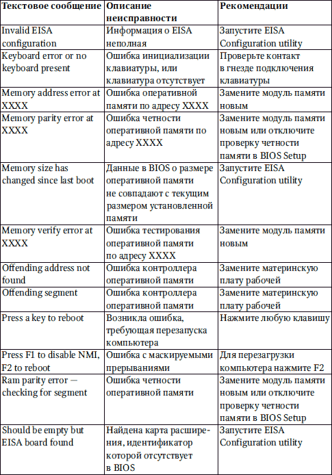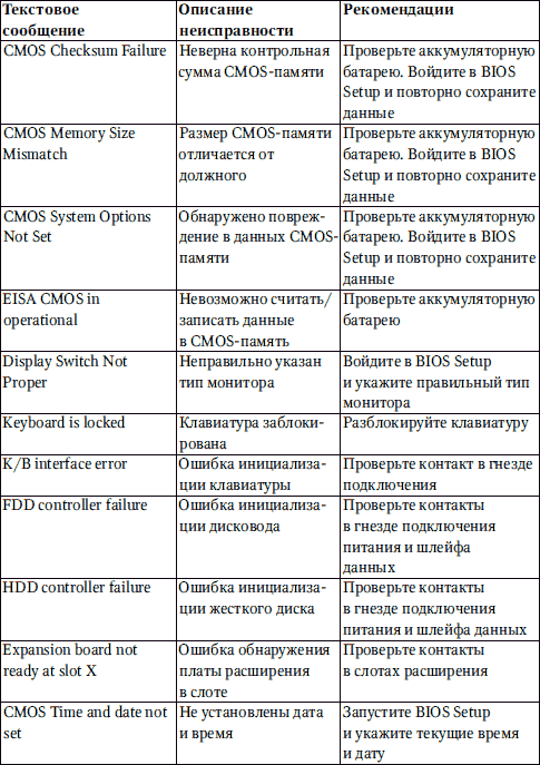 В табл. 1.4–1.6 приведены возможные варианты сообщений BIOS разных производителей.