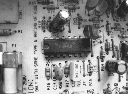 Если осциллографа у вас нет, то можно воспользоваться способом, который безошибочно определяет неисправность микросхемы. Как правило, в роли стабилизатора выступает микросхема TL494 (или ее аналоги), имеющая 14 выводов, каждый из которых представляет нужное напряжение определенной характеристики (рис. 1.5).